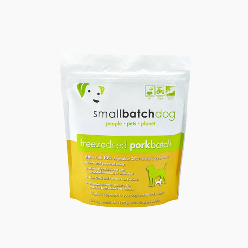 돼지 심장, 돼지고기, 돼지 뼈, 돼지 간, 돼지 신장, 셀러리, 스쿼시호박, 청경채, 콜리플라워, 그린빈, 민들레, 혼합 토코페롤(보존용), 고수, 블루베리, 사과식초, 켈프, 폴락 오일, 마늘, 밀싹, 천연 비타민E(보존용), 오레가노, 타임, 아연 글리시네이트, 구리 글리시네이트, 망간 글리시네이트