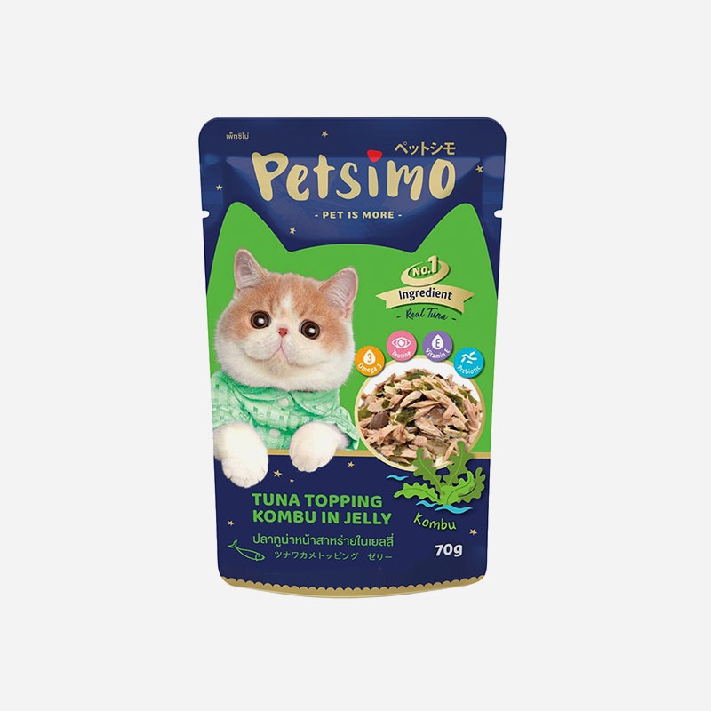 [유통기한 임박할인]펫시모 고양이 파우치 참치와다시마 젤리 70g(유통기한:2024.05.20)