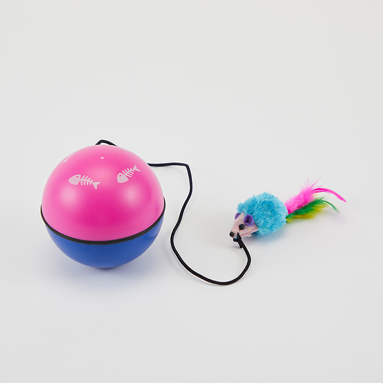 움직이는 자동 장난감 볼에 쥐모양 인형을 잡아당기며 사냥놀이가 가능합니다!