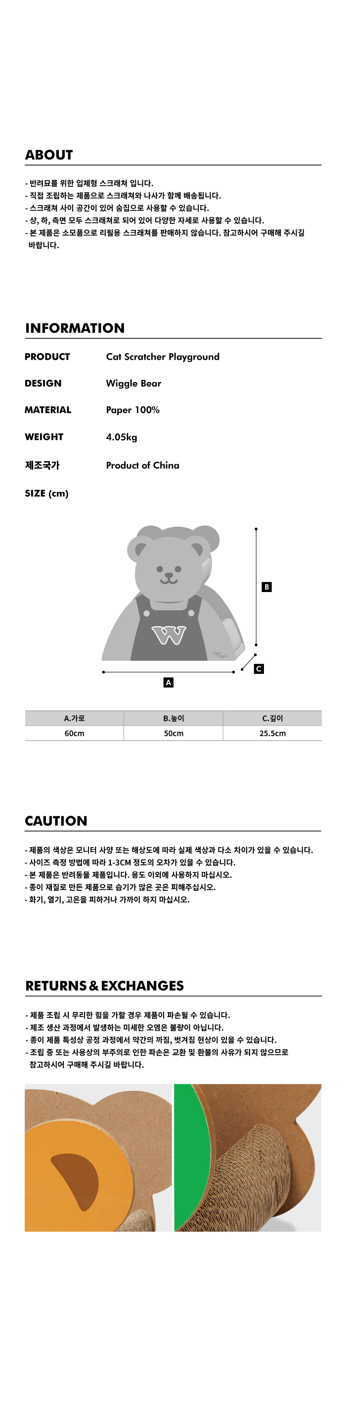 상품의 특성상 묶음 배송이 불가한 경우(모래, 배변패드,캣타워 ) 주문 상품 개수에 비례하여 교환/반품 배송비가 부과될 있습니다.