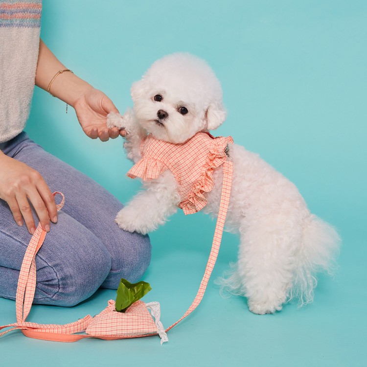 청량한 컬러감의 체크 하네스+똥츄파우치