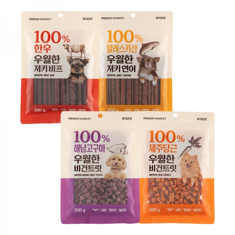 우월한 져키&비건트릿 반려견 간식 4종 세트 800g(200g*4입)