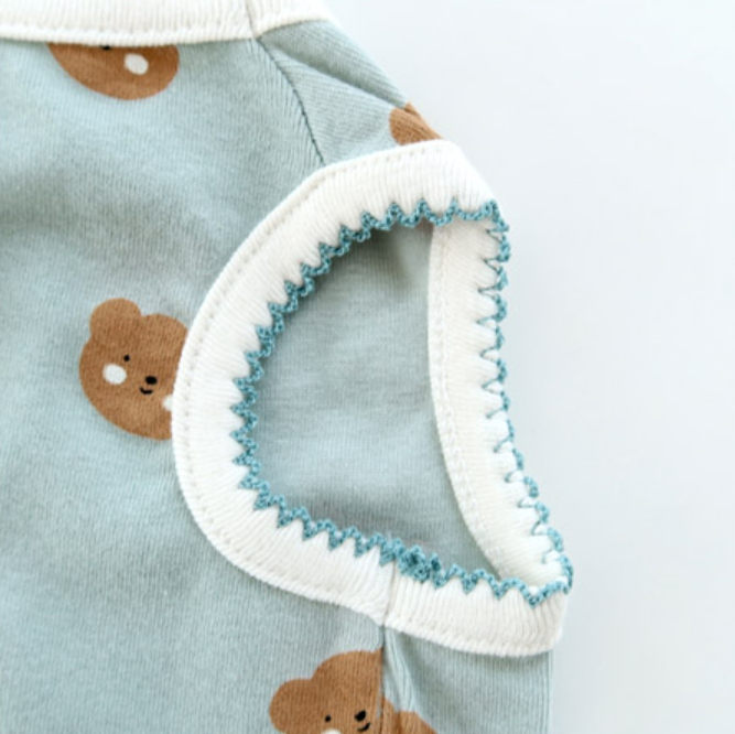 40수 스판으로 텐션이 높아 착용감과 활동성이 좋으며 민소매에 핀코트로 마감 처리했습니다.