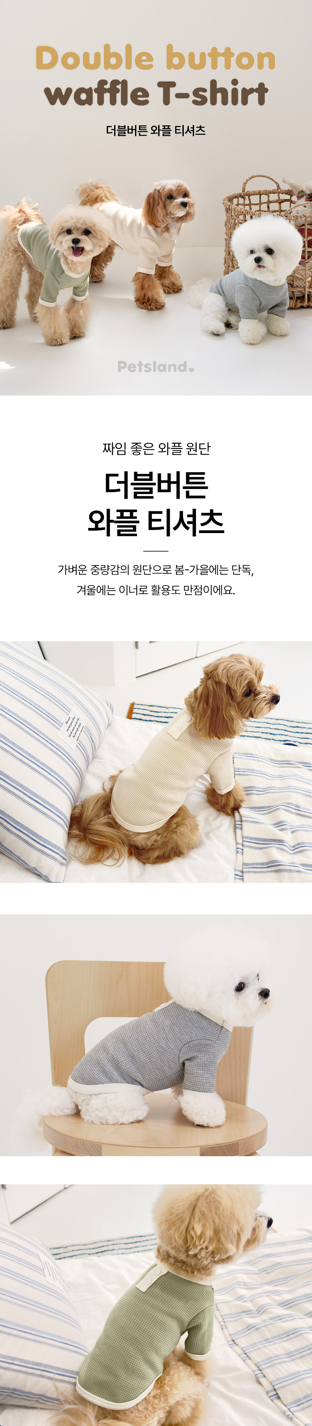 펫츠랜드 더블버튼와플티셔츠 그레이