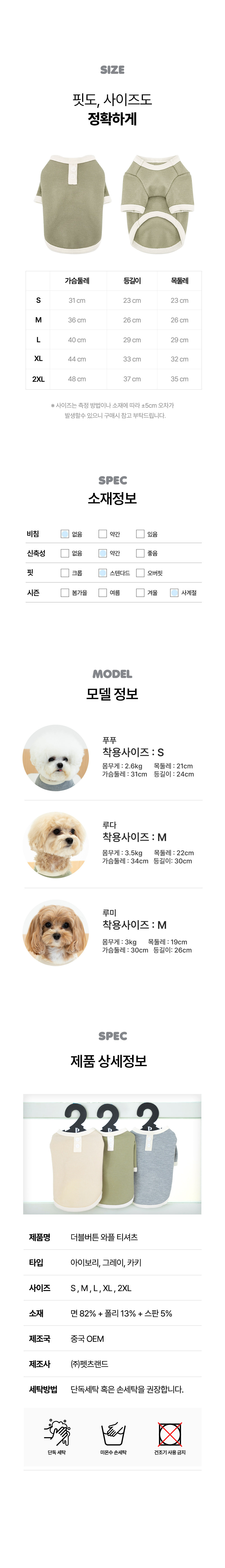 • 펫츠랜드 더블버튼와플티셔츠 그레이