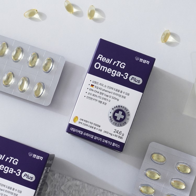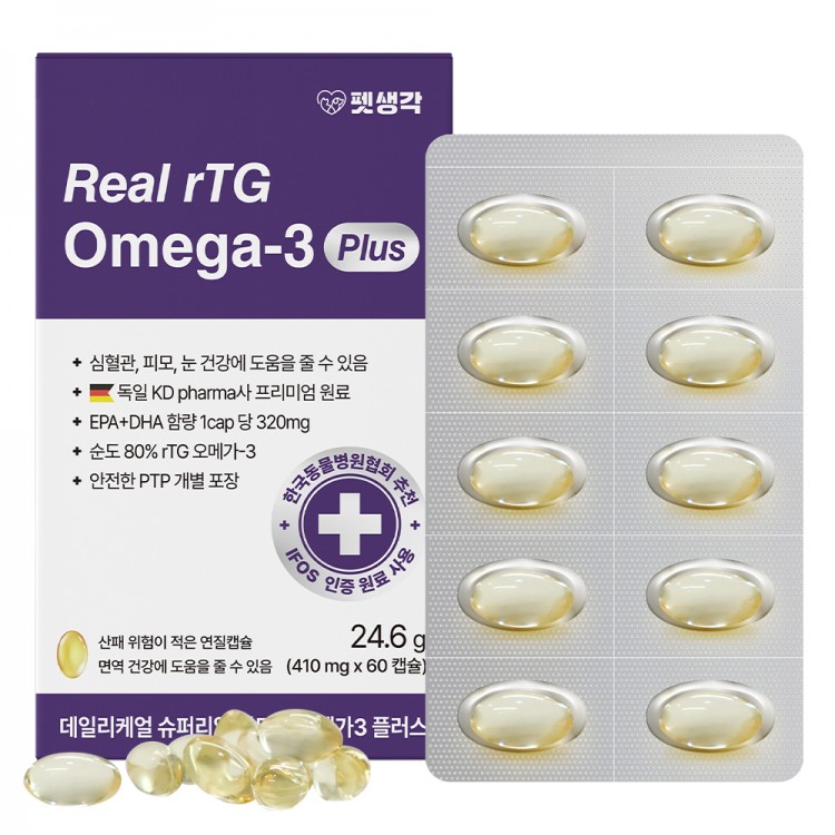 펫생각 순도80% 독일 KD파마 원료 고양이 강아지 피부 관절 항산화 오메가3 60캡슐