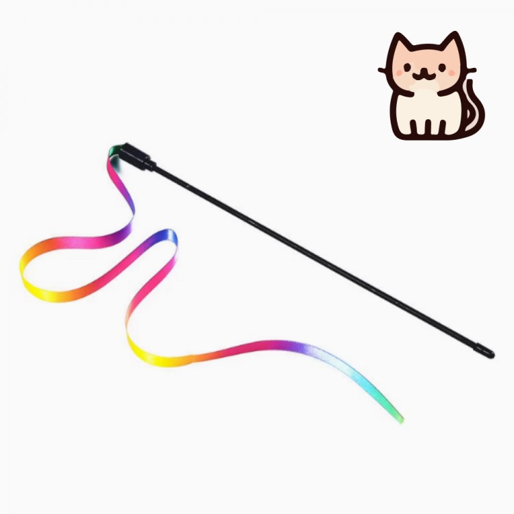 묘견인생 컬러풀 리본 고양이 낚시대 장난감 3개입
