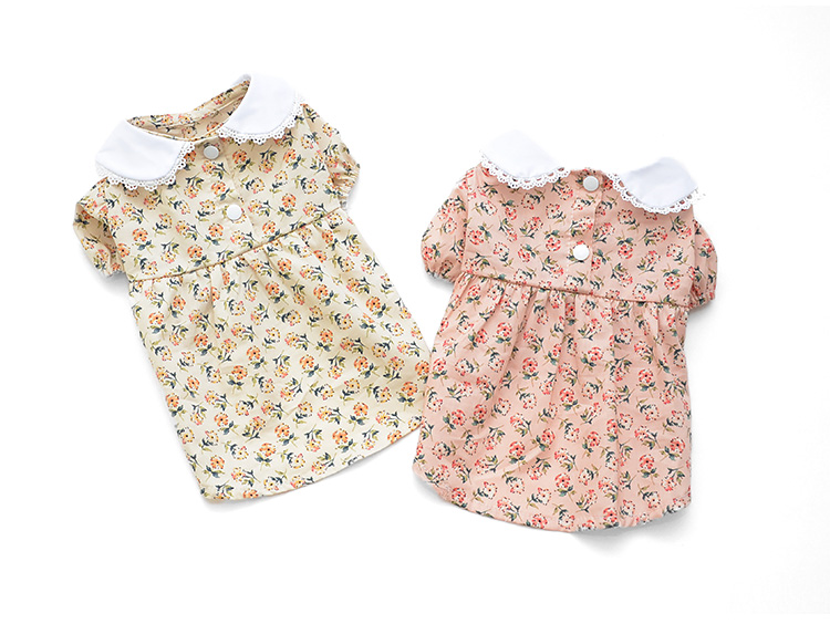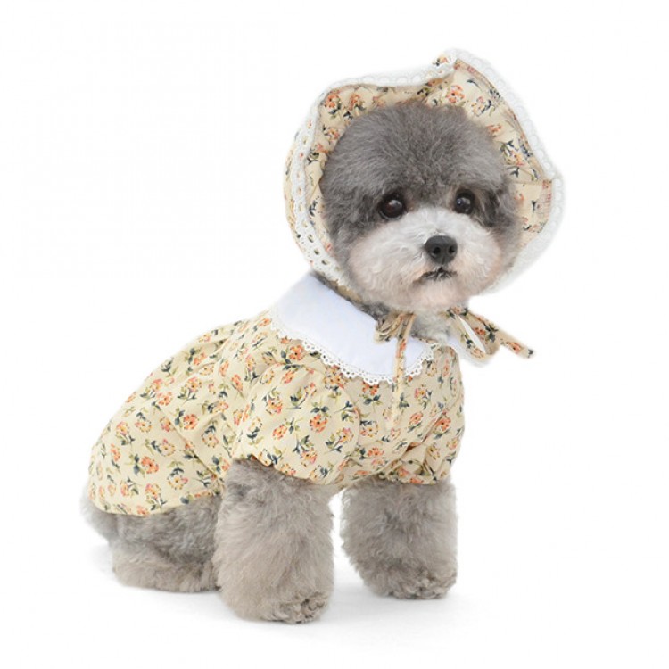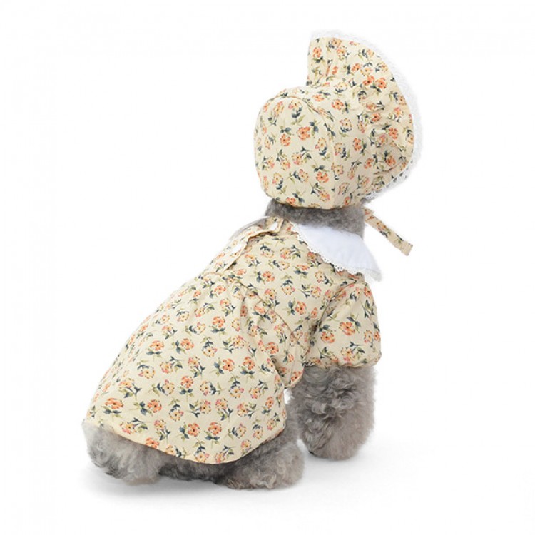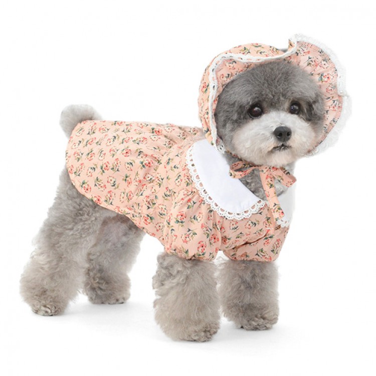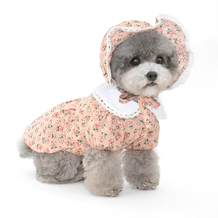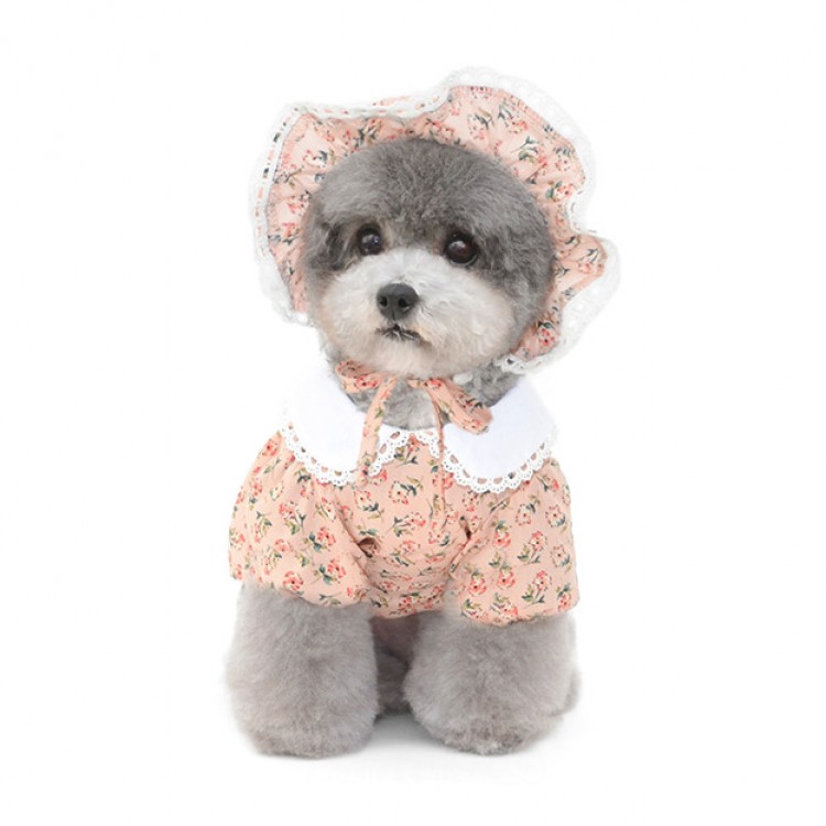 준성펫 잔꽃레이스 카라 원피스 & 모자 세트 (핑크/아이보리)