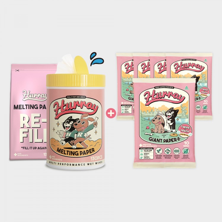 허레이 멜팅페이퍼 130매 본품&리필SET + 자이언트페이퍼 바디티슈5팩