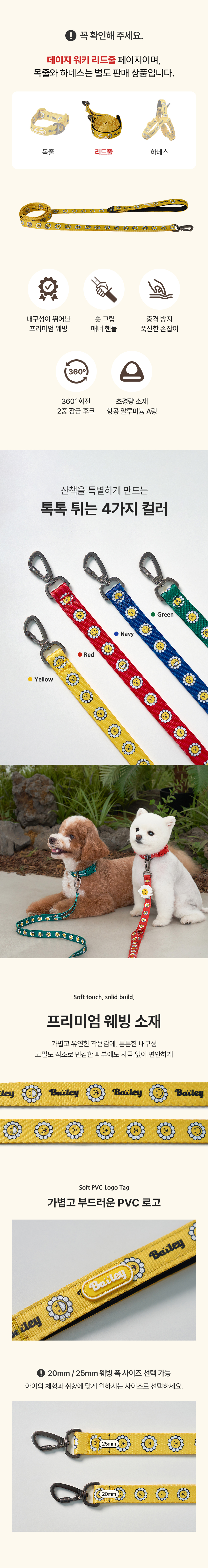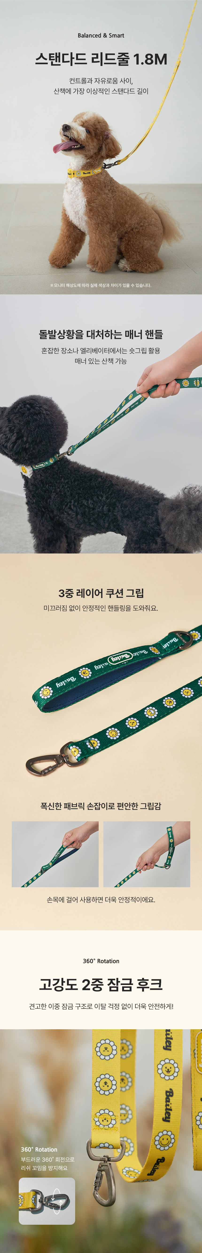 • 베일리펫 산책 데이지 워키 리드줄 그린
