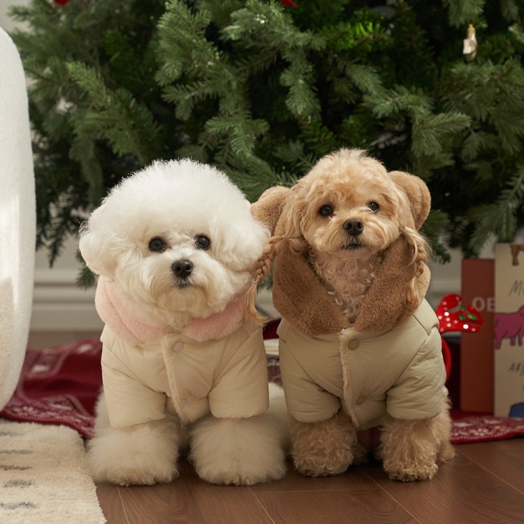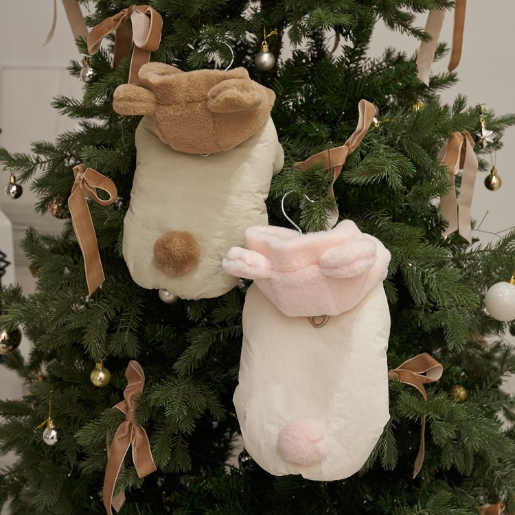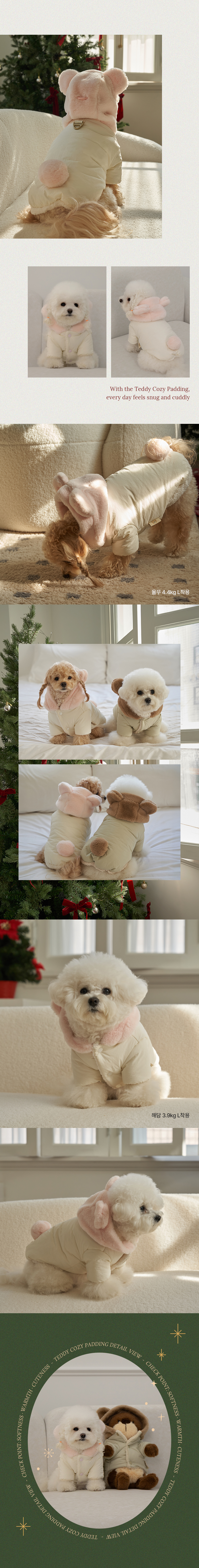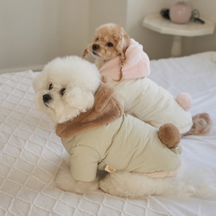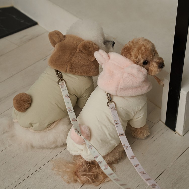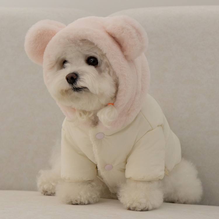 • 베일리펫 겨울 하네스옷 후드 테디 포근 패딩 핑크