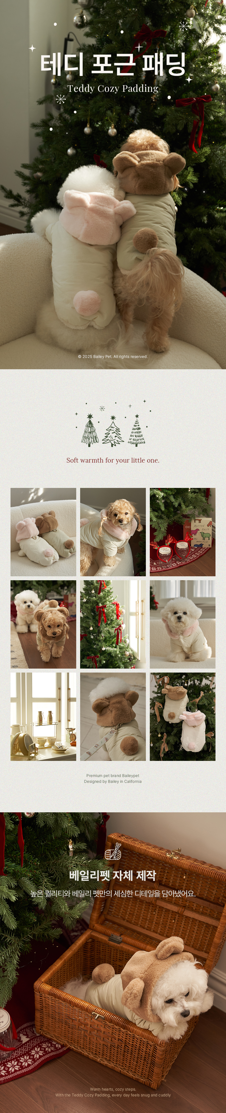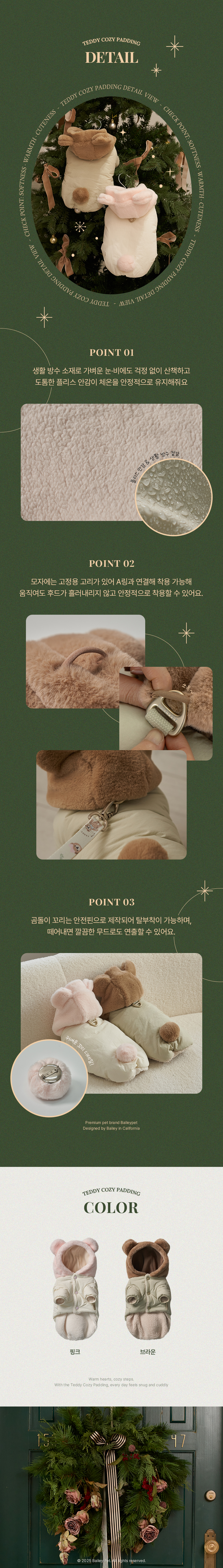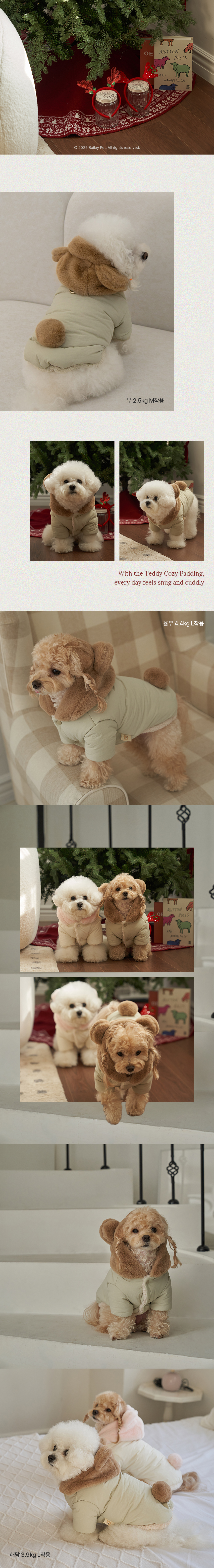 • 베일리펫 겨울 하네스옷 후드 테디 포근 패딩 핑크