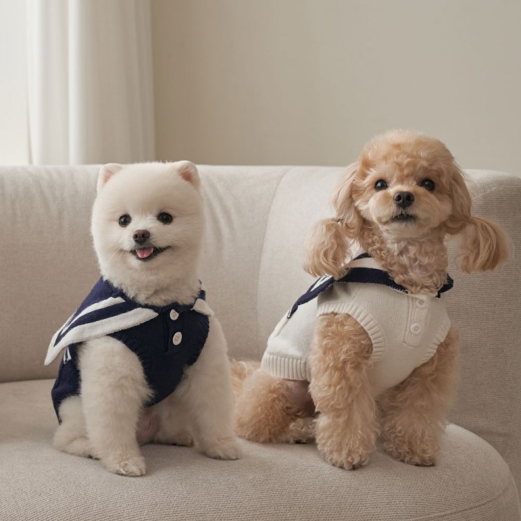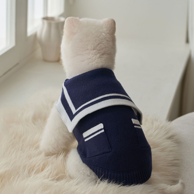 • 베일리펫 실내복 가을 겨울옷 세라 포켓 니트 네이비
